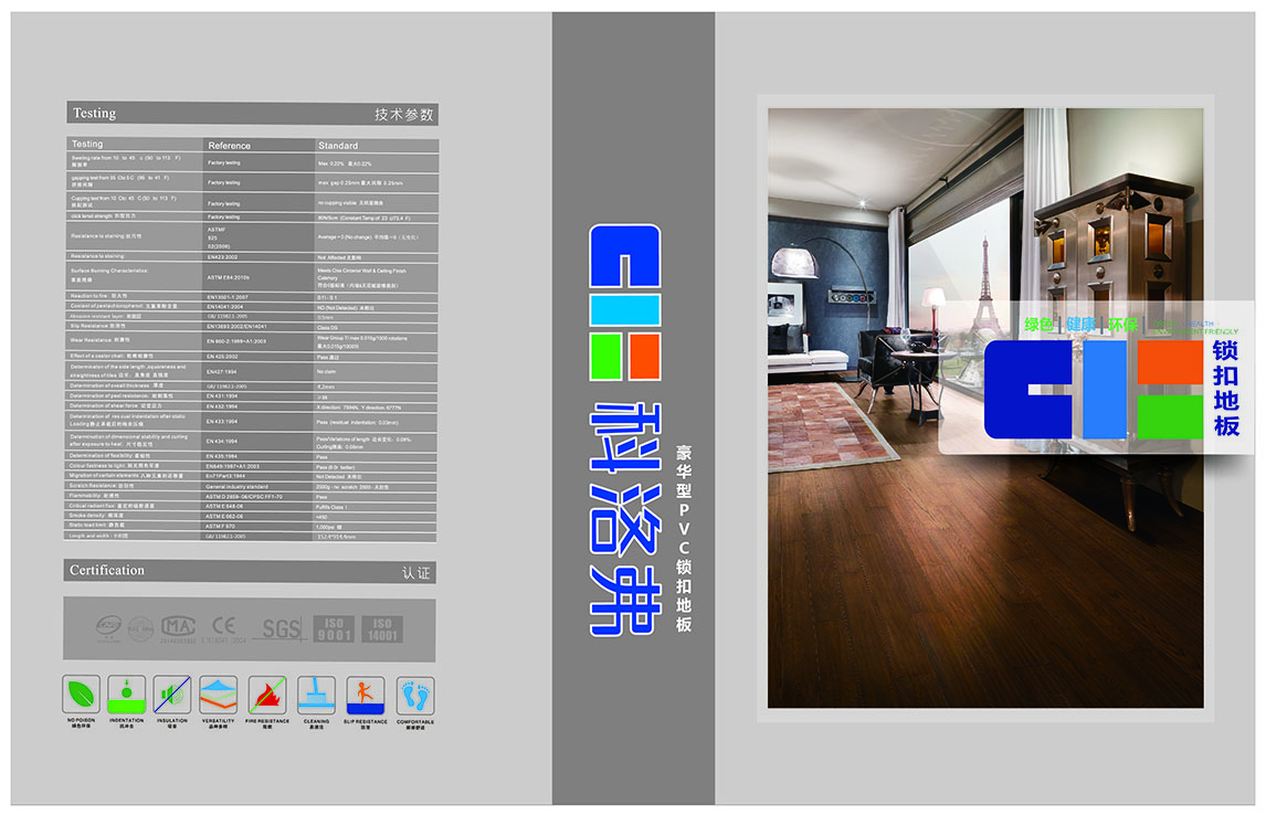 14、PVC地板更防火阻燃:PVC材料本身為防火阻燃材料,通過(guò)防火測(cè)試,離開(kāi)火源即自動(dòng)熄滅,生命安全有保障。